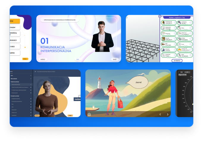 Łączymy wiedzę ekspercką z innowacyjną, multimedialną oprawą. Korzystając z najnowocześniejszych technologii, dobieramy odpowiednią formę, język, styl graficzny i rodzaj kursu, aby maksymalnie zwiększyć efektywność nauczania. Nasze szkolenia są angażujące, skuteczne i dostosowane do Twoich unikalnych potrzeb.